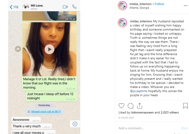 My husband reposted a video of myself wishing him happy birthday and someone commented on his page saying i looked so unhappy. Truth is, sometimes things are not really the way we see them. There i was feeling very tired from a long flight that i wasnt really prepared for,jet lag and the time difference didn’t make it any easier for me coupled with the fact that i had to follow up on everything happening back at home.