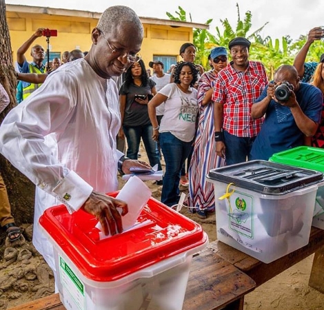 Minister for Power, Works and Housing, Babatunde Fashola, casts his vote at his polling unit in Lagos…