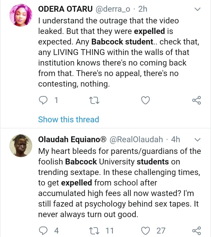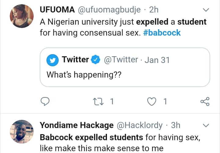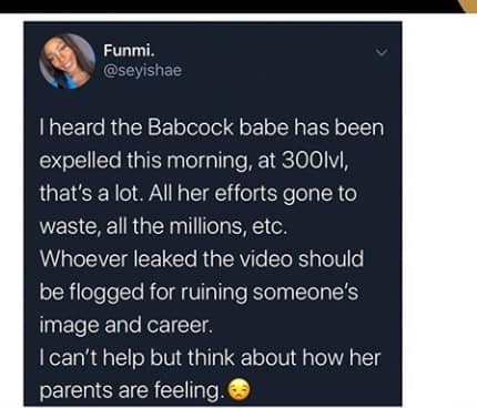 Some are blasting Babcock university for allegedly expelling the young lady ‘just for having sex’.