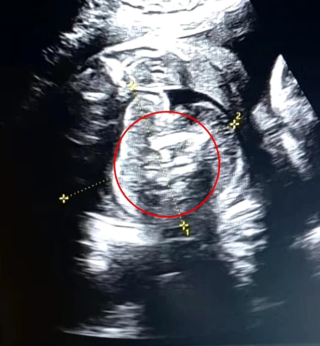 Though her previous scans had come back normal, doctors discovered “an additional structure containing bones” in the unborn baby boy’s abdomen.