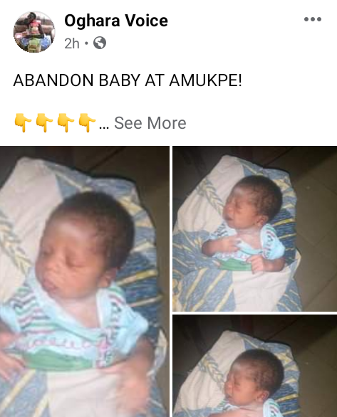 “A child was abandoned somewhere in Amukpe yesterday. A Good Samaritan saw the baby and informed police.The little baby now is at the police clinic. The baby’s pictures are attached here incase someone can identify the mother.” the post reads.