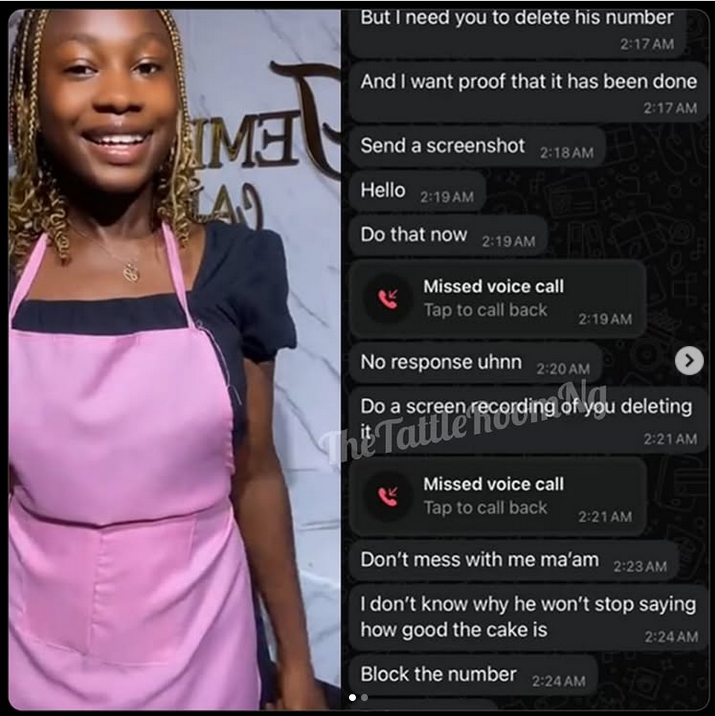 Baker has shared a whatsapp chats she received from a jealous girlfriend who had commissioned her to deliver a cake to her man.