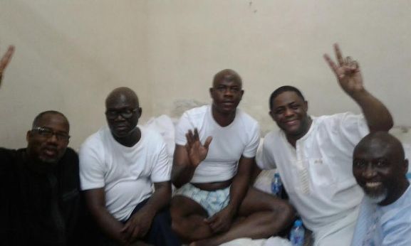 From left: Senator Bala Mohammed, Reuben Abati, Senator Musiliu Obanikoro, Femi Fani-Kayode and Engineer Bashir Ushaq Bashir pictured together at the EFCC underground cells while they were in detention in November 2016.