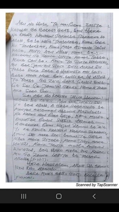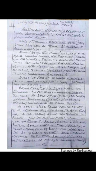 This is a letter (originally written in Hausa as seen below) from Mohammed Bello Turji Kachalla, the one we all know about.