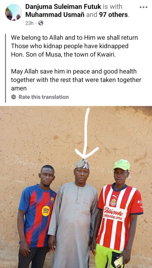 Suspected bandits have abducted a councillor, Hon. Dan Musa Garin Kwairi, alongside his two wives in Futuk community, Gwana District of Alkaleri Local Government Area of Bauchi State.
