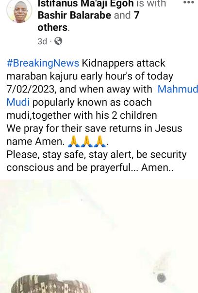 One Istifanus Ma’aji Egoh, who confirmed the attack said the bandits also kidnapped one Mahmud Mudi and his two children.
