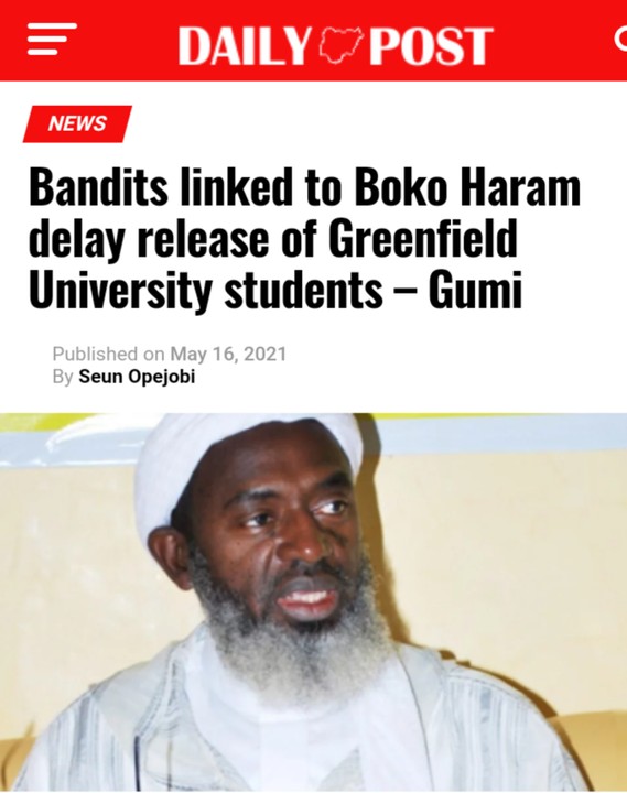 Gumi said the students have not been released due to the bandits link with Boko Haram.Bandits had attacked the private university based in Kaduna State on April 17 and abducted about 20 students.