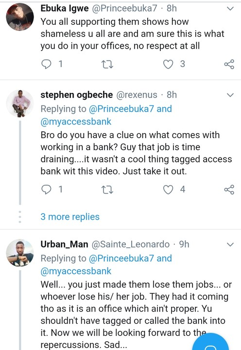 In a Video Making Rounds online as shared by a Twitter user, @PrinceEbuka7, a Night Staff of Access Bank University if Lagos was captured on Camera in action to get pants down with a Lady in his Office.