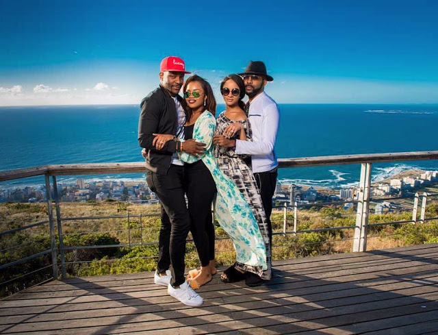 Ebuka Obi-Uchendu who has been making rounds on the internet over his lovely agbada outfit he wore to BankyW and Adesua Etomi’s traditional wedding ceremony on Sunday took to social media to share the photo above with his wife, Cynthia, Banky W and Adesua as they had a lovely time together on Signal Hill, Cape Town.
