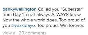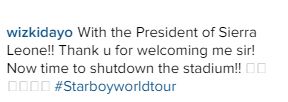 Wizkid’s former boss Banky W took to instagram to celebrate him Wizkid who is currently on his world tour was hosted by the President of Sierra Leone before his performance