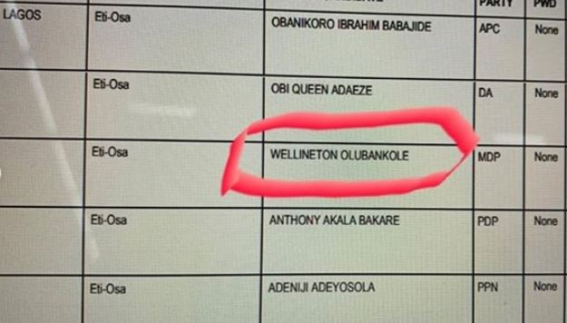 Nigerian singer and candidate for the Modern Democratic Party (MDP), Banky W has taken to Instagram to call out the Independent National Electoral Commission (INEC) for misspelling his name and misprinting his party’s logo.
