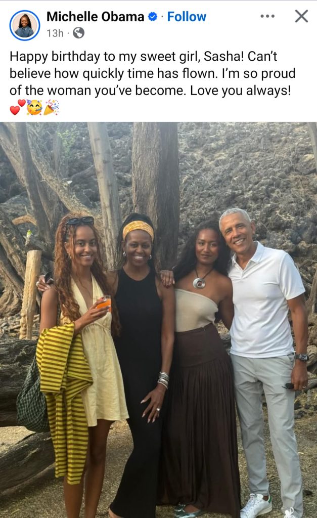 “Happy birthday, Sasha! Watching you grow into the incredible woman you are has been a true gift. I’ll always be proud of you and will always be here for you,” Barack, 63, captioned the post.