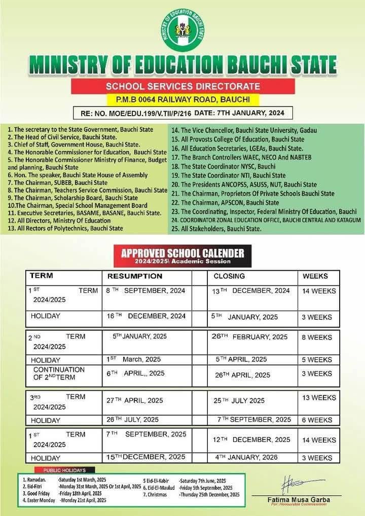 The Bauchi State government, through the Ministry of Education, has announced the closure of all schools in the state for five weeks in preparation for the 2025 Ramadan fast.