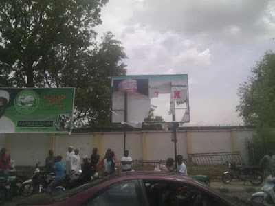 Bauchi State Civil Servant have taken to the streets to protest over the non-payment of their salaries and pensions. They started the protest from Games Village and moved to the government house, where they destroyed the banners of Gov. Mohammed Abdullahi Abubakar, that were located outside. More photos after the cut…
