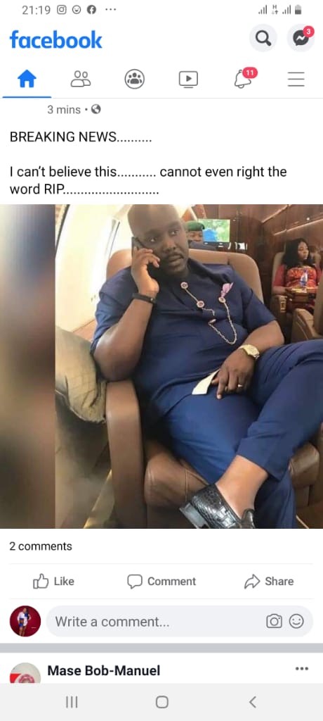 A reliable source close to the Bayelsa born Billionaire told NAIJA LIVE TV on Whatsapp Messager that He died a painful death from the Anaesthesia Liposuction.