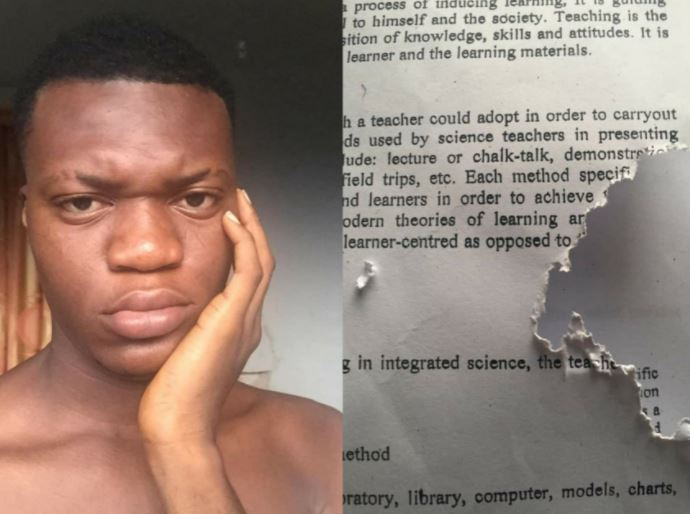 Dreal Bayelsa Pikin, a student of the Niger Delta University, Wilberforce Island, took to Facebook to cry out after rats ate parts of his reading materials in preparation for his exams slated for Friday, December 3.