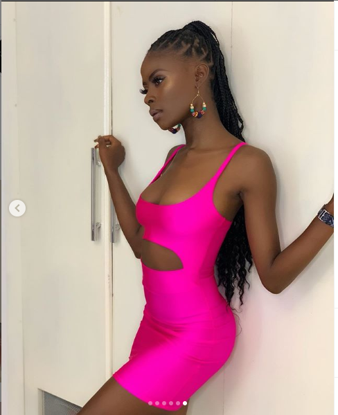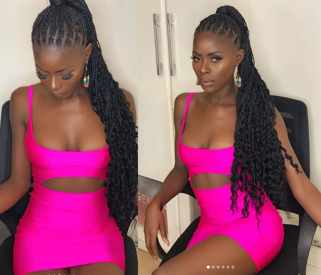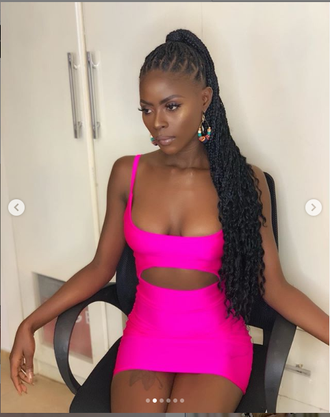 Ex-Big Brother Naija housemate, Khloe took to Instagram to share these sexy photos of herself rocking a pink skintight dress which showcased her cleavage and flat tummy.