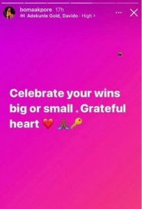 He wrote in another post “celebrate your wins, big or small. Grateful heart”.