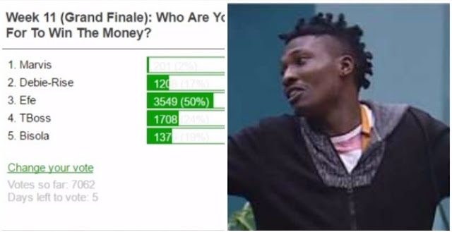 Early online polls shows fans favorite, Efe leading other Big Brother Naija 2017 finalists.