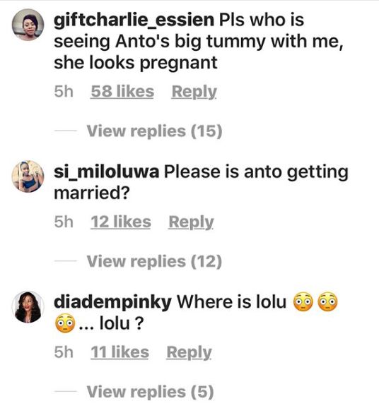 Recall that when Anto arrived Nigeria from South Africa with Lolu at the twilight of the Big Brother Naija reality show, rumours emerged that she was pregnant. Some of her pictures showed a bulge in her tummy which attracted media attention.