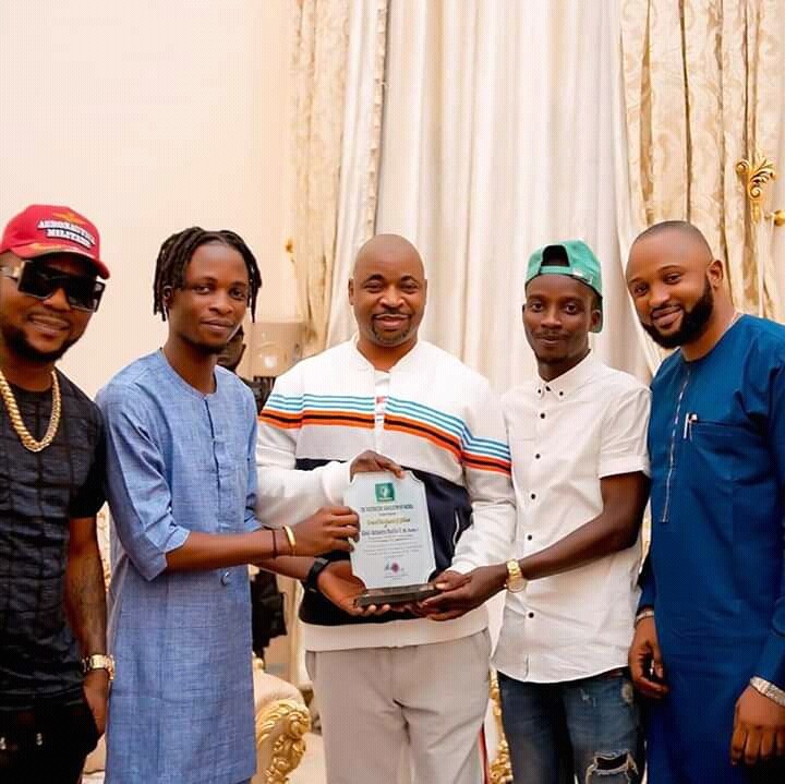 As visitation winded down, Hon. Musa Babatunde Akanni(MAKA) who was the brain behind the evening asked Laycon and other youths present to join him in presenting an award of excellence to the state chairman of transport workers Alhaji Musiliu Ayinde Akinsanya (MC Oluomo) for his outstanding support and contributions towards the development of the youths in Lagos State.