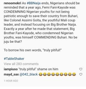 Reno Omokiri took to Facebook to remind Fani-Kayode of his comments and wrote: