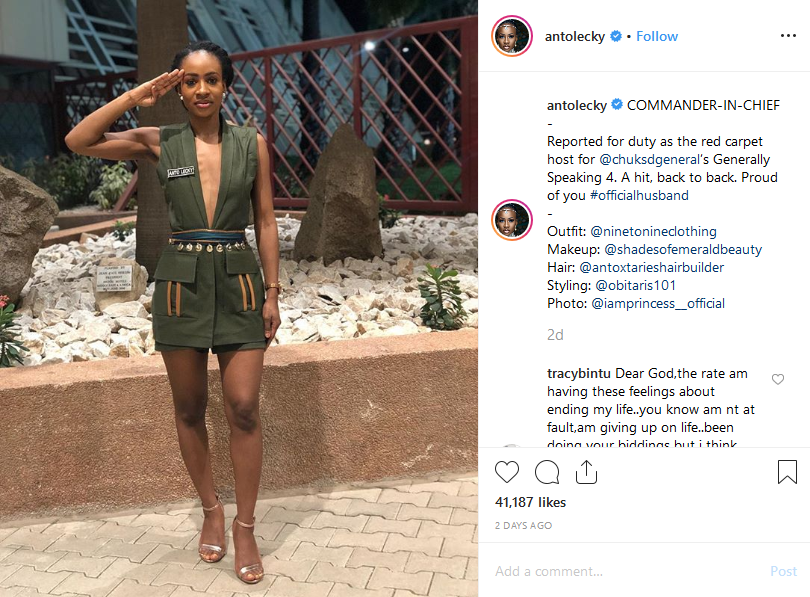 BBNaija Star "Anto" Salutes In New Photo As She Reveals Cleavage - 9jaflaver