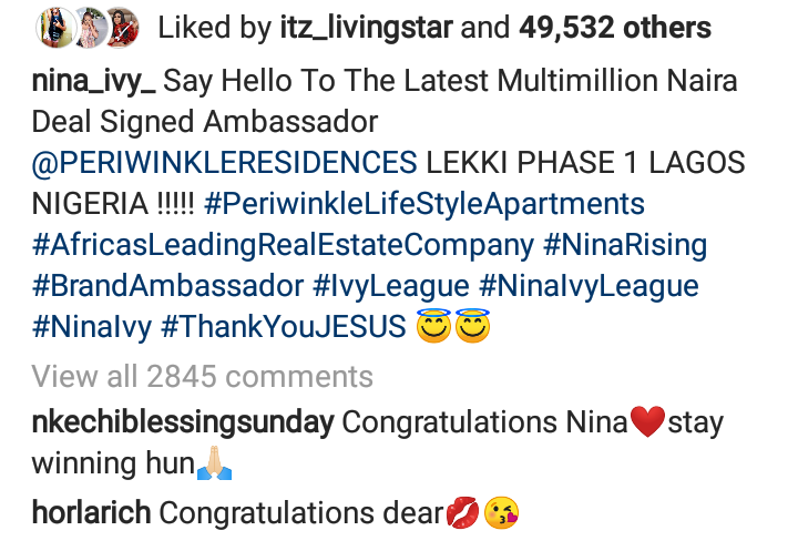 Popular bbnaija star Nina Ivu becomes richer as she sign a new endorsement deal worth of million.