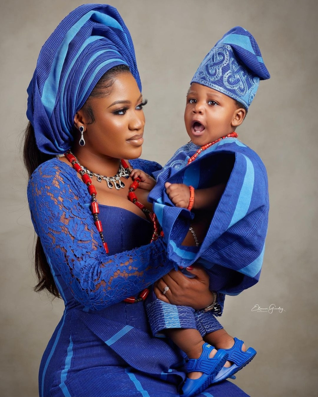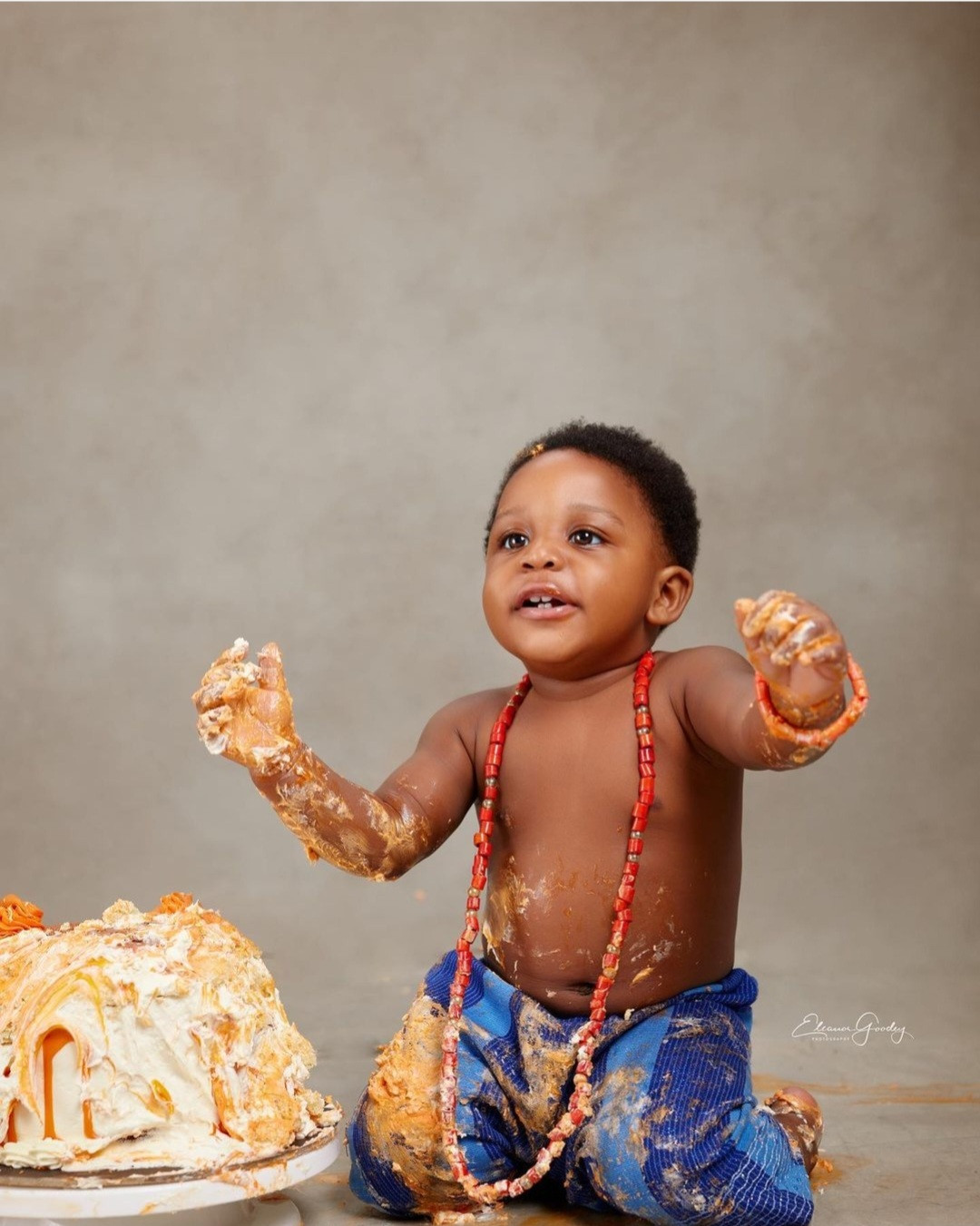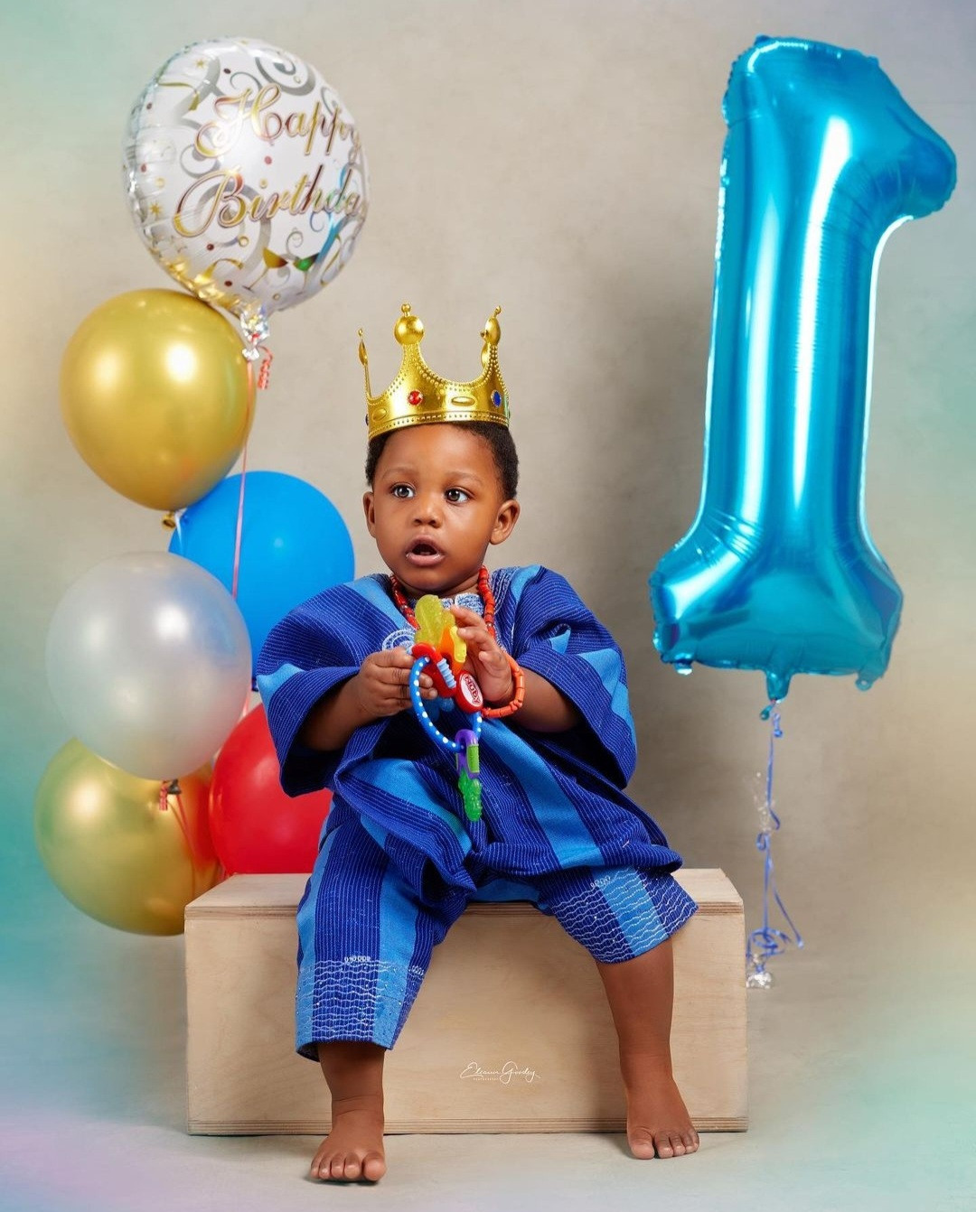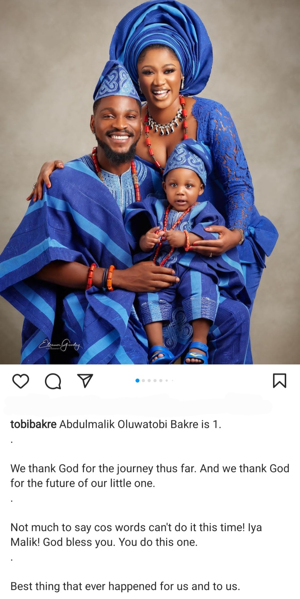 Abdulmalik, the son of Tobi and his wife, Anu Bakre turned one and the couple shared new photos of him with their social media followers.