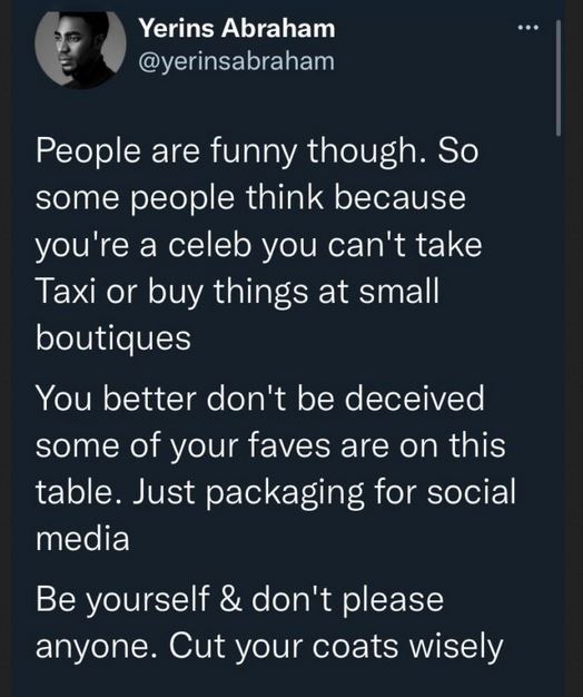 Ex-BBNaija housemate, Yerins Abraham has lamented about how celebrities live fake lives to impress people.