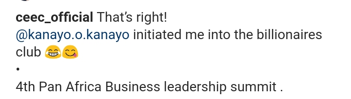 “That’s right! @kanayo.o.kanayo initiated me into the billionaires club