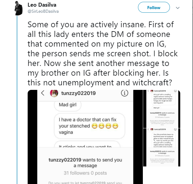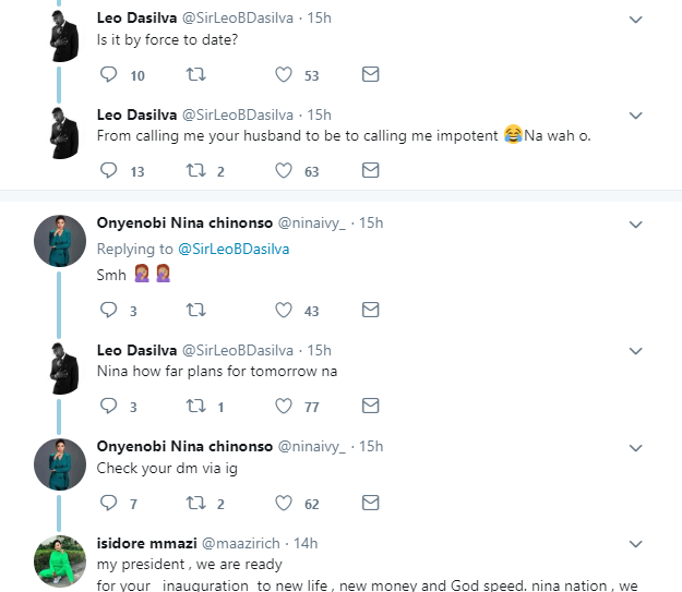Leo who stated that one shouldn’t be forced to date anyone,further revealed that the lady who said he was impotent also sent same message to her brother. He tweeted;