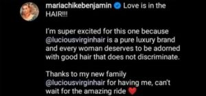 Days after signing Mapia Tea deal, BBNaija’s Maria Ike has signed a new endorsement with Lucious Hair.