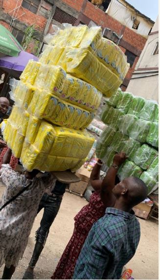 Wife of former BBNaija housemate, Mike visits Balogun market in Lagos Island to buy sanitary pads for girls