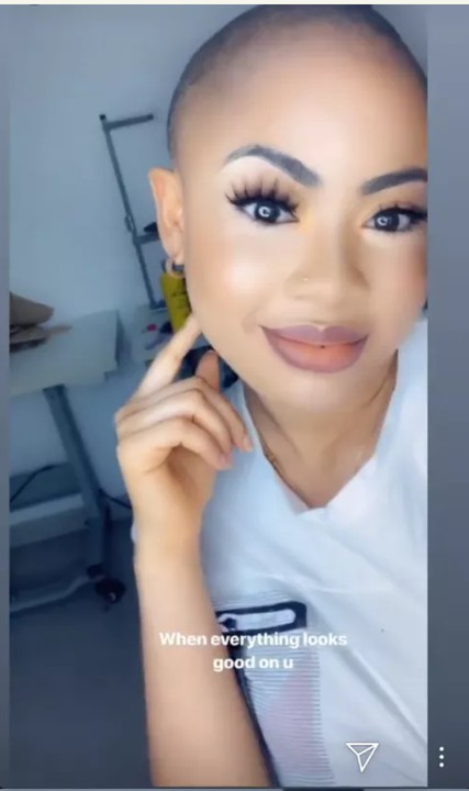 Has taken to her insta story to share a video of her rocking her bald hair style.