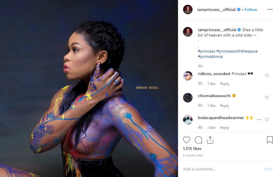 Big Brother Naija 2018 housemate, Princess served a racy photo in which she was covered with body paint on Instagram.