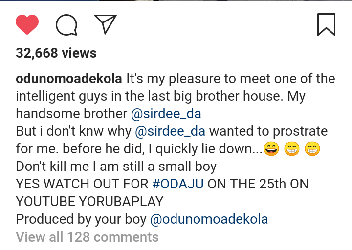 But i don’t knw why @sirdee_da wanted to prostrate for me. before he did, I quickly lie down… Don’t kill me I am still a small boy
