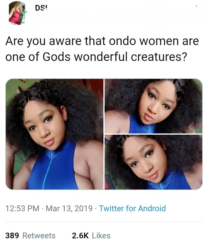 “Are you aware that ondo women are one of Gods wonderful creatures?”