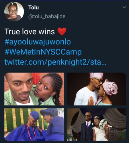 “True love wins” Tolu wrote in a tweet on her Twitter page.
