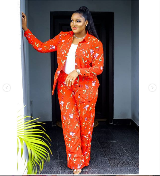 Nollywood Actress and mum of four, Omotola Jalade–Ekeinde shared these new beautiful photos of herself posing in a matching two-piece floral outfit.