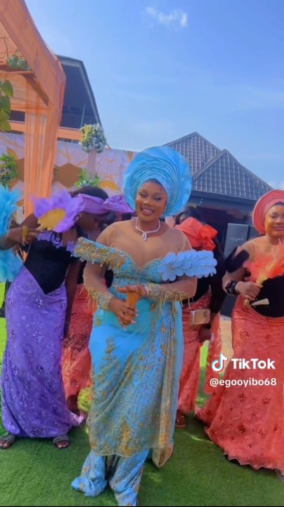 In the accompanying video, the lady is seen holding a cup filled with wine, a customary gesture often performed during weddings and introductions.