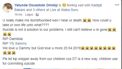 Another friend of the deceased, Mhiz Khadeejah Abiodun, took to Facebook to mourn the death. She wrote: “RIP to my bestie for life, my roomie, gist partner still can’t believe you are gone. I can’t hold the tears back. It wasn’t fair that your life had to end. I will always keep you in my heart. May Almighty Allah Grant you Al-janat firdauis. Adewara Damilola Blessings is gone oooo. My Harikeade is gone.”