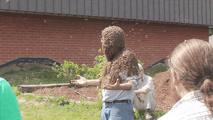 As reported by Metro UK, he explains how by holding the queen, the other honey bees swarm around him.