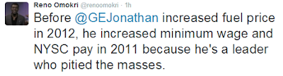 ‘Before Jonathan increased fuel price in 2012, he increased minimum wage and NYSC pay’ – Reno Omokri Says