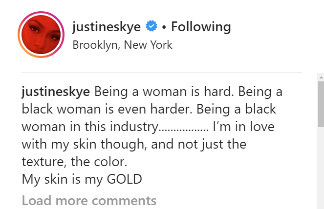Being a woman is hard. Being a black woman is even harder. Being a black woman in this industry…………….. I’m in love with my skin though, and not just the texture, the color.
