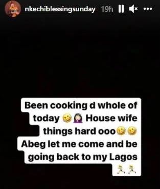 Nigerian actress, Nkechi Blessing Sunday has stated that it is difficult being a housewife.