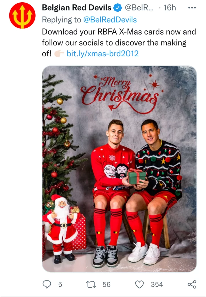 “Still looking for the perfect card for the holidays? Don’t worry, our Red Devils are already in the Christmas spirit.”
