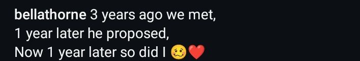 The post reads, “3 years ago we met, 1 year later he proposed. 1 year later, so did I 😚❤️”.