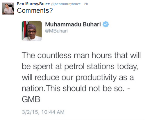 Ben Murray-Bruce wants your comment about this statement made by Buhari during GEJ’s administration