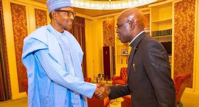 Benue Governor-elect, Reverend Father Hyacinth Alia has paid a visit to President Muhammadu Buhari at the Presidential Villa.